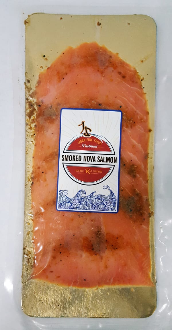 JABBA FINE FOODS Brand of Clasic NOVA - Smoked Salmon cured and smoked to perfection . Pre sliced and individual retail packaged .